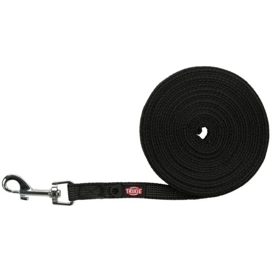Поводок Trixie Tracking Lead прорезиненный для собак, без петли, размер S-M, 5 м/15 мм, чёрный