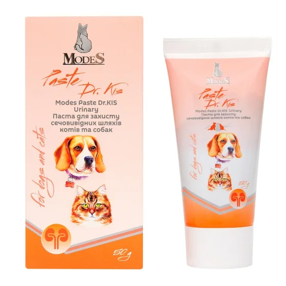 Modes Paste Dr.Kis Urinary – паста для защиты мочевыводящих путей кошек и собак, 50 г – специализированное средство для поддержки здоровья мочевыводящей системы у кошек и собак. Подходит для взрослых животных и котят/щенков старше 6 недель.