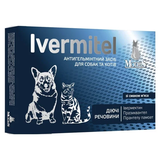 Modes Ivermitel – антигельминтное средство для собак и кошек в форме вкусной таблетки с мясным вкусом. Предназначено для профилактики и лечения паразитарных заболеваний у домашних животных.