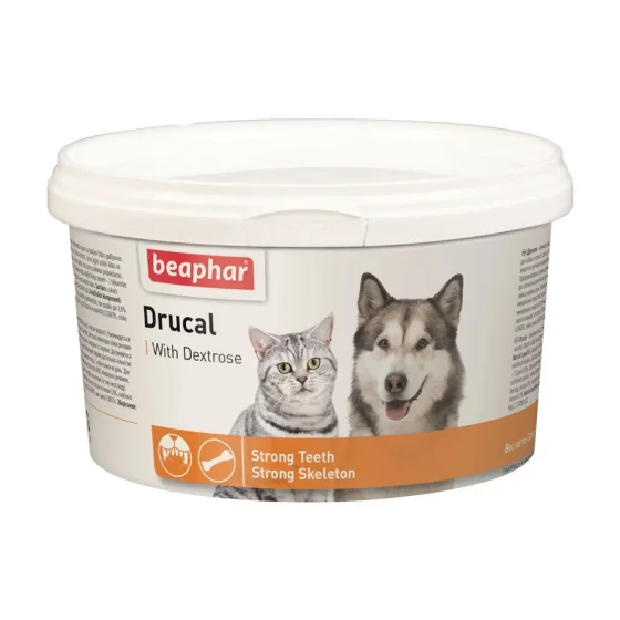 Минеральная добавка Beaphar Drucal для укрепления костей, зубов и мускулатуры собак и кошек, порошок, 250 г