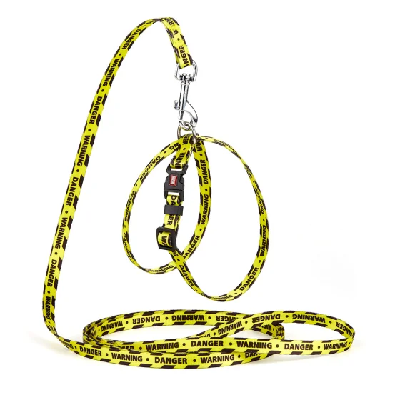 Комплект Kareline шлея и поводок для собак, нейлон, узор Warning, 1/30×33 см