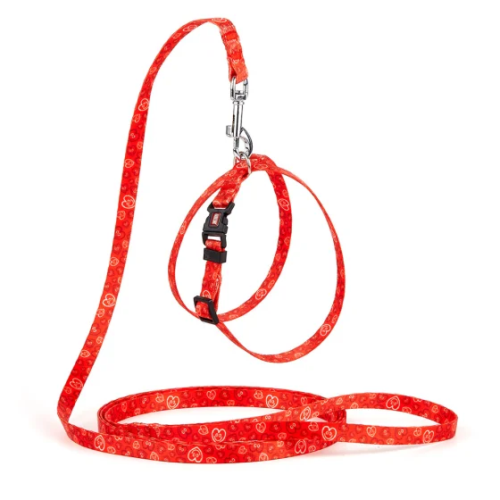 Комплект Kareline шлея и поводок для собак, нейлон, узор Hearts, 1/30×33 см