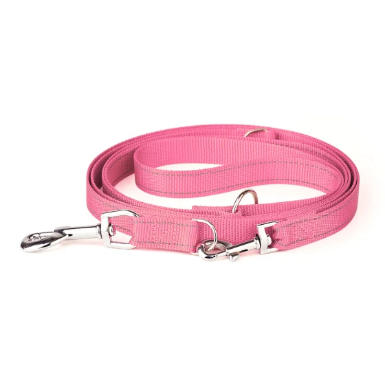 Особое внимание заслуживает функциональность застежки благодаря украшению дополнительной фурнитурой она превращается в поводок "6 в 1": длинный или короткий поводок, длинная или короткая привязь, поводок "hands free", когда заняты обе руки, поводок-петля для прогулок с двумя собаками.