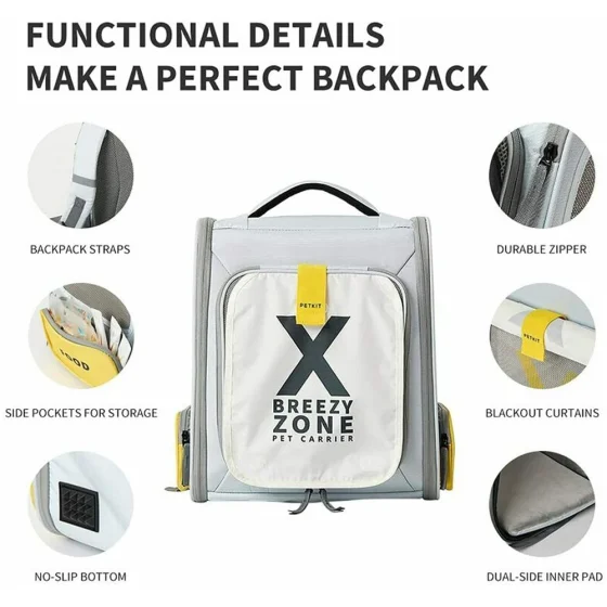 Рюкзак-переноска Petkit Breezy Zone Yellow/Grey для собак и кошек, 35×27×43 см, серый