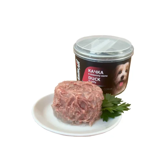 Наш консервированный корм для собак со свежим мясом утке в желе – это настоящее удовольствие для вашего любимца.