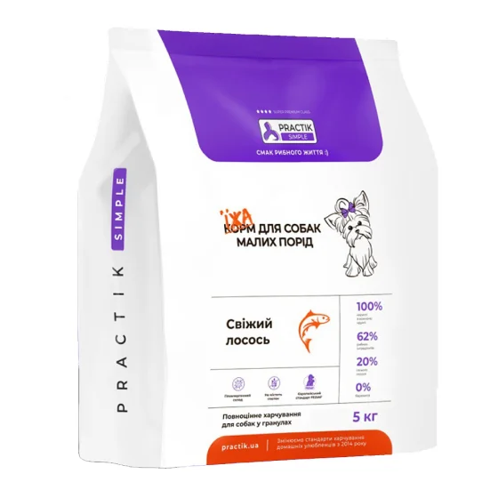 Сухой корм Practik Simple Свежий лосось, для щенков и собак малых пород, 5 кг