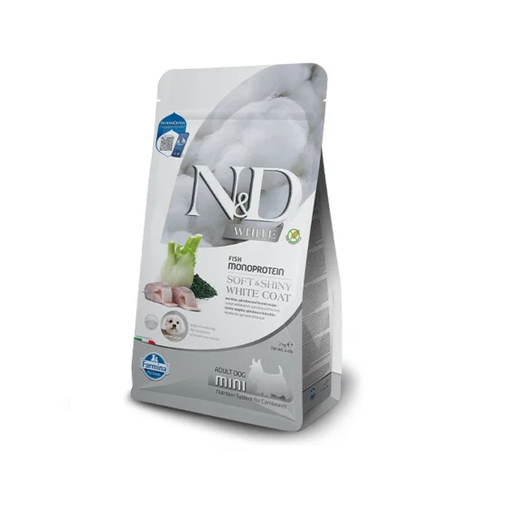 Сухой беззерновой корм Фармина Н энд Д WITHE для собак мелких пород с белой шерстью, с сибасом, спирулиной и фенхелем, 2 кг