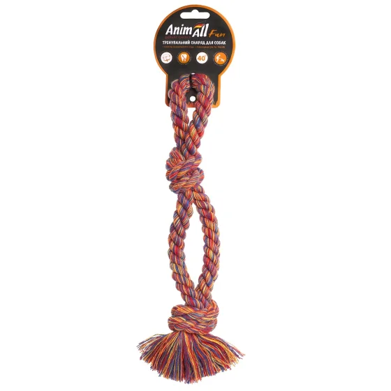 Игрушка AnimAll Fun двойная канат-кость для собак, разноцветная, 36 см