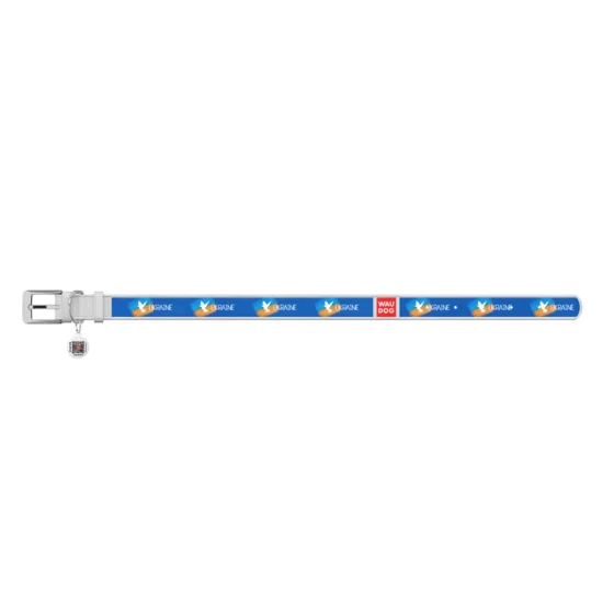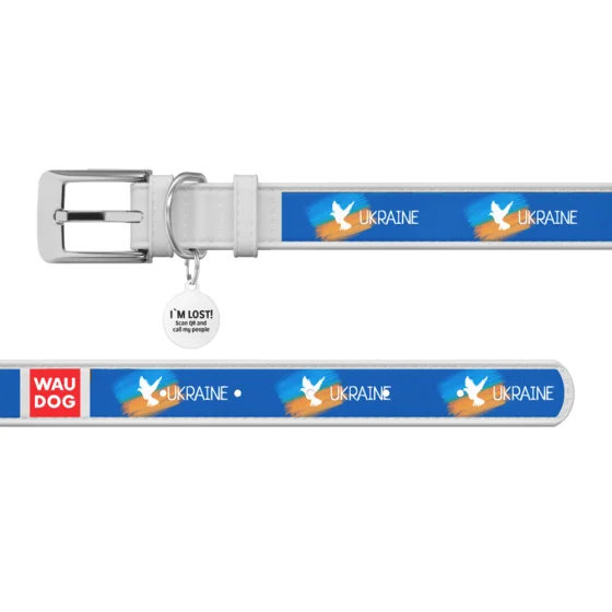 Ошейник кожанный Waudog Design з QR паспортом для собак, рисунок "Знамя", S,15мм/26-35 см, белый
