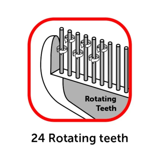 Гибкая прорезиненная ручка обеспечивает надежный захват, а вращающиеся зубцы бережно работают с шерстью, не повреждая кожу. Гребень подходит для собак с короткой и длинной шерстью, но не рекомендуется для грубого или жесткого покрова.