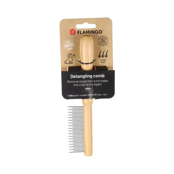 Расческа Flamingo Comb Short/Long Babu для собак, бамбук, с короткими/длинными зубцами (17/18 шт), 21×4.1 см