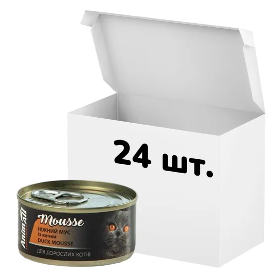 Упаковка консервов AnimAll для кошек, нежный мусс из утки, 80 г, 24 штуки
