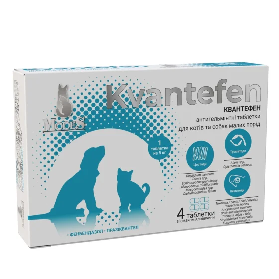 Таблетки MODES Kvantefen для кошек и собак малых пород, антигельминтные, 4 таблетки