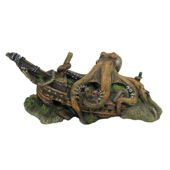 Декорация керамическая Amtra Осьминог на корабле, 22.2 × 14 × 10.5 см