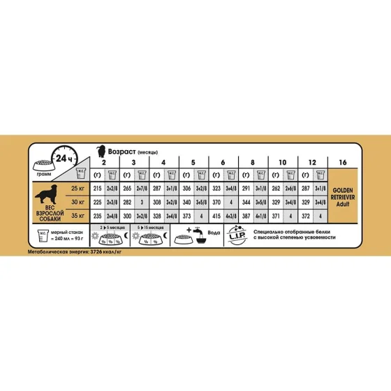 Форма, размер, текстура и формула крокеты адаптированы для щенка золотистого ретривера.