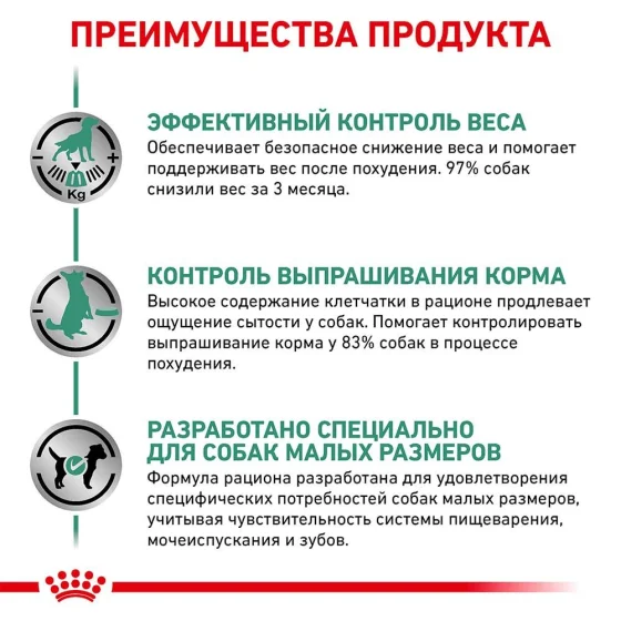 Обеспечивает безопасное снижение веса и помогает поддерживать вес после похудения. 97% собак снизили вес за 3 месяца.
