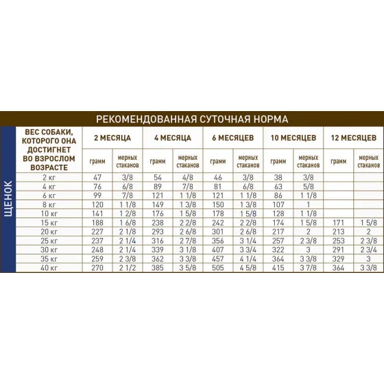 | Возраст | Для щенков |