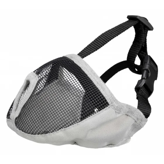 Намордник Trixie M для короткомордых собак выполнен из прочного полиэстера серого цвета, обеспечивая надежную защиту во время прогулок для пород с плоской мордой, например, английских бульдогов. Он предотвращает поедание посторонних предметов, но не ограничивает дыхание, питьё и обнюхивание собаки.