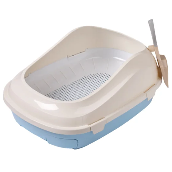 Туалет для дорослих котів з високим знімним бортом, що перешкоджає розсипання наповнювача і з Наймане гратами для зручного прибирання.