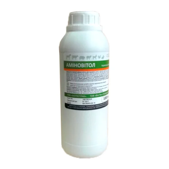 Аміновітол - кормова добавка, що володіє комплексними фармакологічними властивостями окремих вітамінів і амінокислот, які сприяють нормалізації обміну речовин в організмі, підвищенню його резистентності, позитивно впливають на продуктивність, збереженість і відтворювальні функції тварин і птиці.