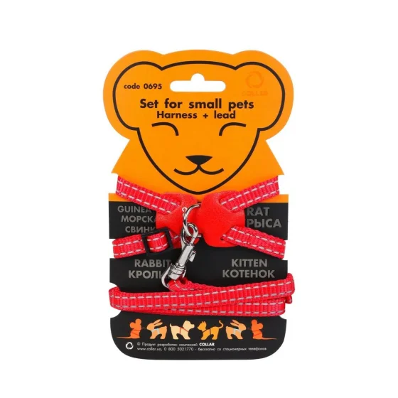 Нейлонова шлея Dog Extreme для морських свинок і декоративних щурів, 10 мм, 22-29 см, червона