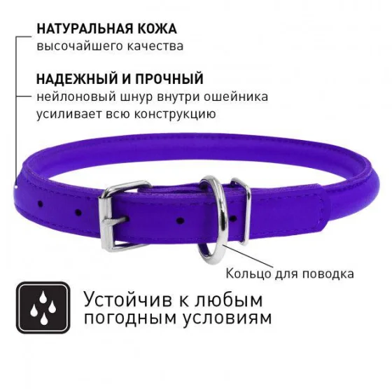Нашийник Waudog Glamour круглий, діаметр 8 мм, довжина 25-33 см, фіолетовий