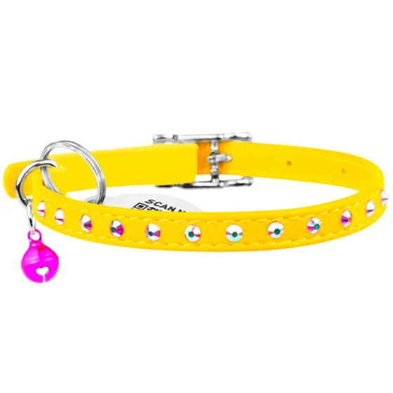 Нашийник Waudog Glamour з гумкою, клейові стрази, для котів, ширина 9 мм, довжина 22-30 см, жовтий