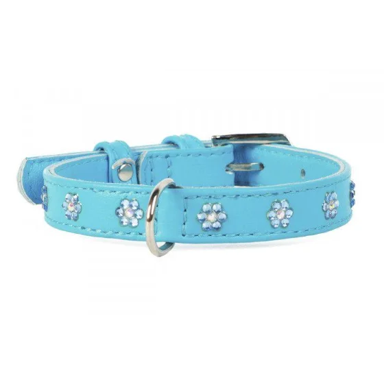 Нашийник Waudog Glamour з клейовими стразами "Квіточка", ширина 15 мм, довжина 27-36 см, блакитний