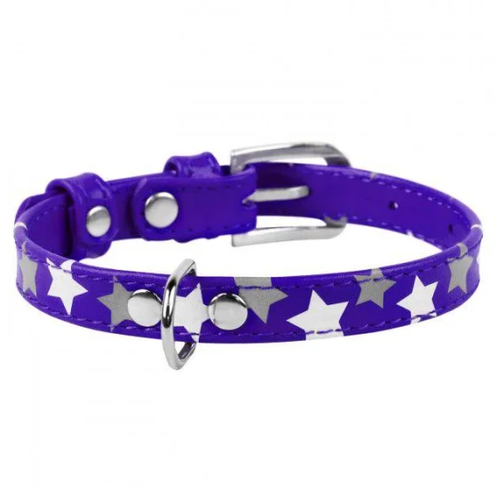 Нашийник Waudog Glamour з візерунком "Зірочка", ширина 25 мм, довжина 38-49 см, фіолетовий