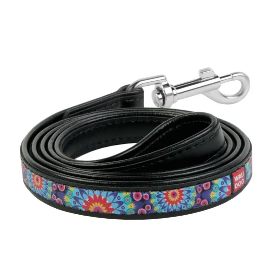 Повідець Waudog Printed з малюнком Квіти для собак 18 мм, 122 см, чорний