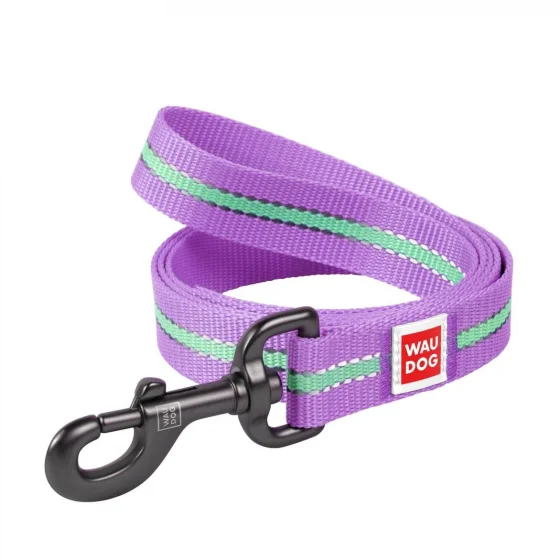Повідець Світлонакопичувальні Waudog Nylon для собак 15 мм, 122 см, фіолетовий