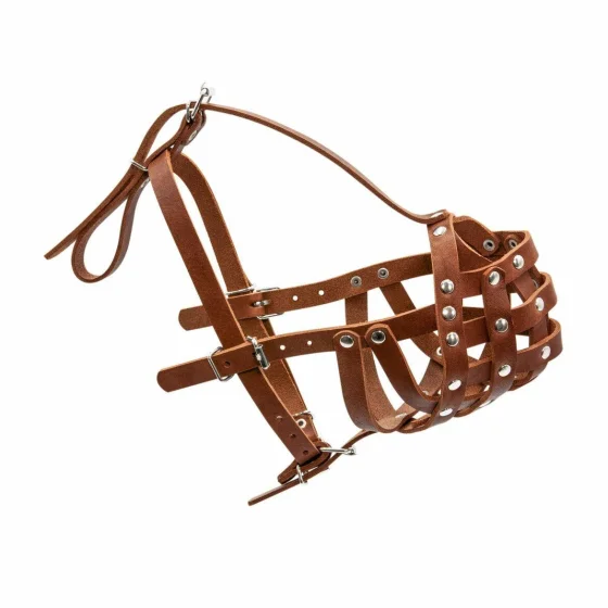 Високоякісний шкіряний намордник з продуманим дизайном і прикрасами у вигляді заклепок. Ідеально підійде для боксер великий.