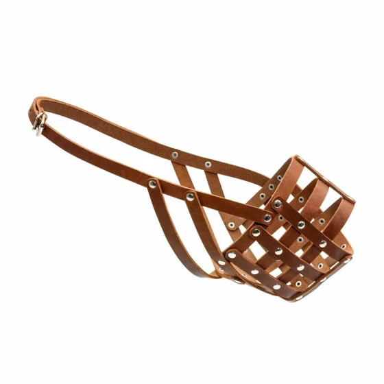 Високоякісний шкіряний закритий намордник з продуманим дизайном і прикрасами у вигляді заклепок, завдяки йому вихованець не зможе підібрати якийсь сміття або вкусити.