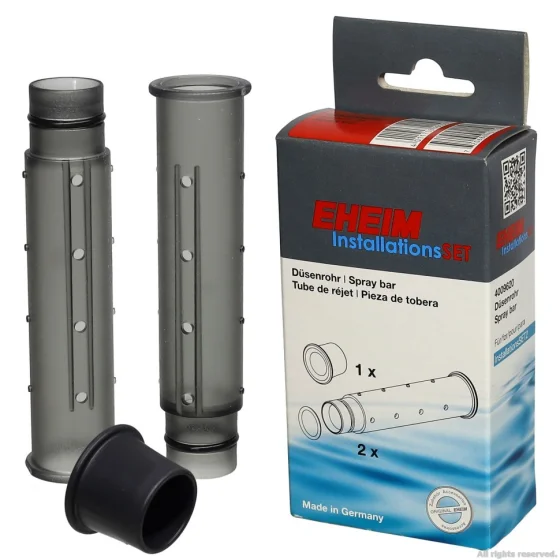 Для встановлення флейти Eheim spray bar на InstallationsSET 2, приєднайте її до відповідного випуску води та забезпечте надійне кріплення. Періодично перевіряйте флейту на забруднення та забезпечуйте її регулярне очищення, щоб уникнути забивання та забезпечити рівномірний потік води.