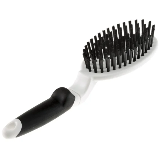 Ferplast GRO 5759 Premium — універсальна щітка для котів і собак із короткою, середньою або довгою шерстю. Завдяки м’яким нейлоновим щетинкам вона дбайливо видаляє пил, бруд і відмерлі волоски, роблячи шерсть гладкою та блискучою. Ергономічна ручка з м’яким протиковзким покриттям забезпечує зручність і комфорт під час догляду.
