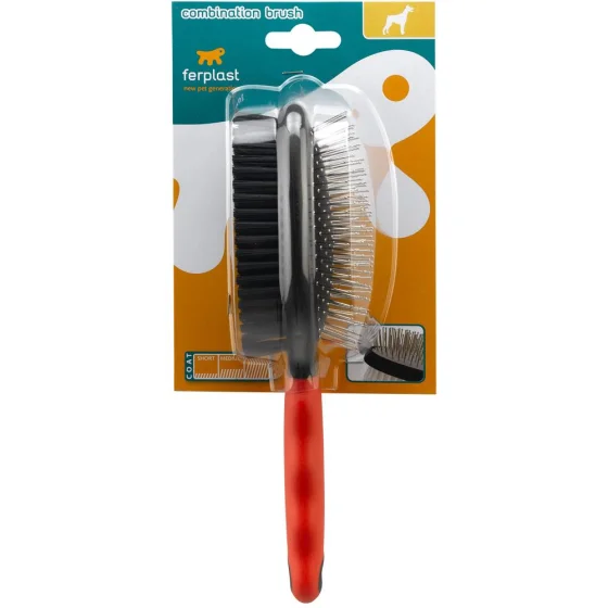 Ferplast GRO 5928 Medium — зручна подвійна щітка для собак середнього розміру, призначена для комплексного догляду за шерстю. Одна сторона щітки м’яко розплутує ковтуни та видаляє відмерлі волоски, а інша сторона розгладжує шерсть та надає їй доглянутий вигляд. Ергономічна ручка забезпечує комфортний та надійний хват.