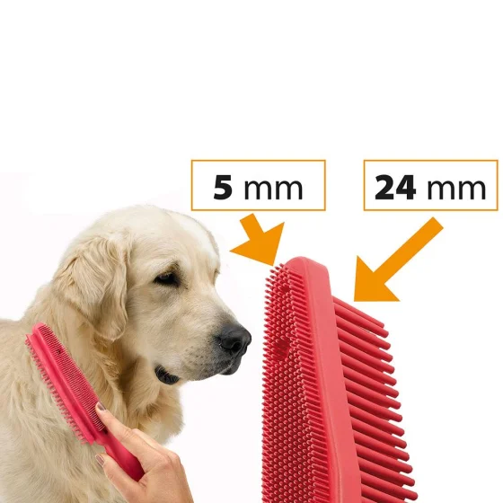 - М’які гумові зубці для безпечного та делікатного збору шерсті;