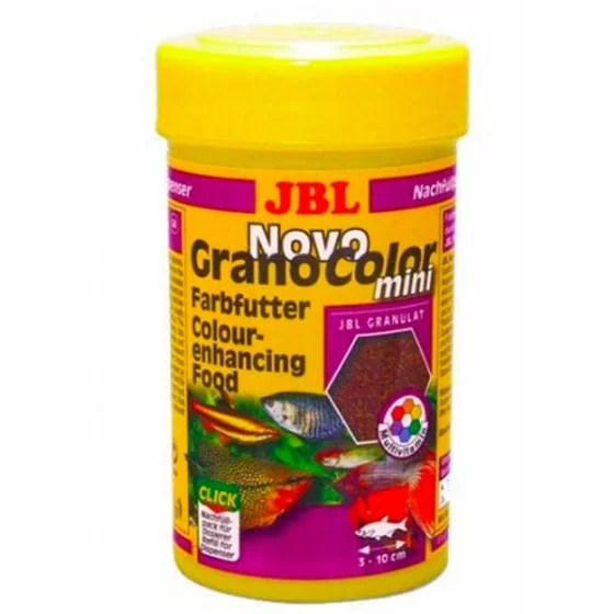 JBL NovoGranoColor mini — основний корм у вигляді міні-гранул для невеликих акваріумних риб, спеціально розроблений для посилення яскравого забарвлення. Містить природні барвники, вітаміни та мінерали для підтримки здоров’я, активності та красивого зовнішнього вигляду риб. Міні-гранули легко засвоюються та підходять для щоденного годування.