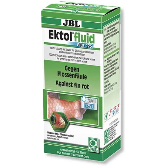 JBL Ektol fluid Plus 125 — препарат для лікування ротової та плавникової гнилі у прісноводних акваріумних риб. Містить активні компоненти, які ефективно пригнічують патогенні бактерії, сприяючи швидкому відновленню пошкоджених тканин та плавників. Безпечний для риб при дотриманні інструкції та оптимальної дозування.