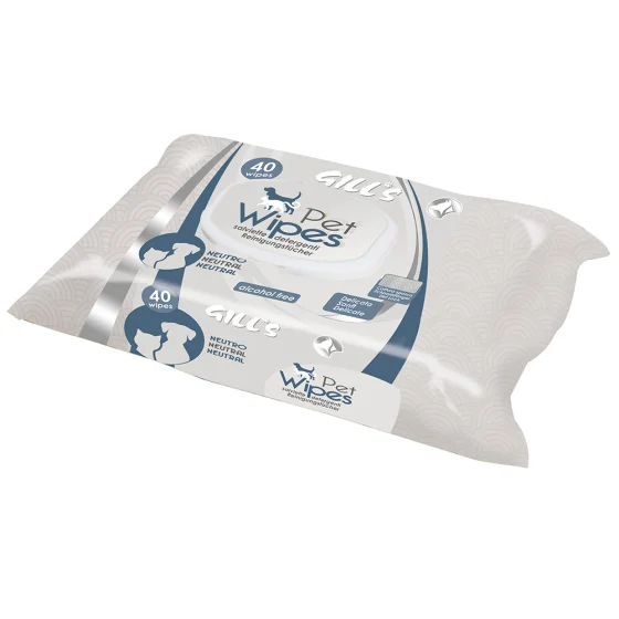 Вологі серветки Croci Gill's Neutral для котів і собак, без запаху, 40 шт