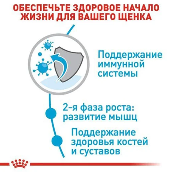 Під час другої фази росту цуценята гігантських порід інтенсивно нарощують м’язову масу. Корм має оптимальний вміст високоякісного білка, що сприяє здоровому розвитку м’язів.