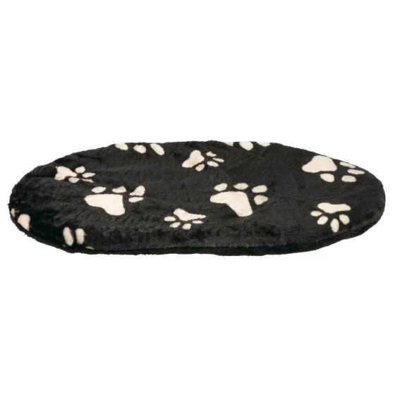 Лежак-подушка Trixie Joey для собак, в чорному кольорі, має овальну форму. Зроблений з плюшевого матеріалу і наповнювачем з флісу товщиною 4 см. Є принт у вигляді собачих лапок. Підходить для установки в пластикові ліжка.