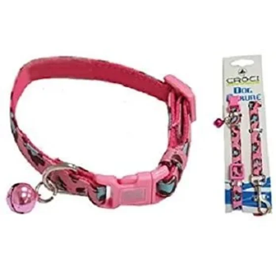 Нашийник+поводок Croci Mini Jungle для собак, з дзвіночком, нейлон, рожевий, 16-24×0.8 см/0.8×120 см