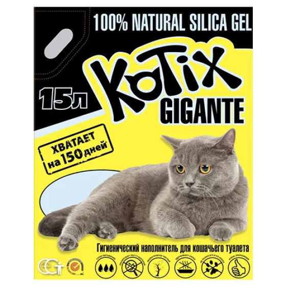 Гігієнічний сілікагелевой наповнювач для котячого туалету Котікс.