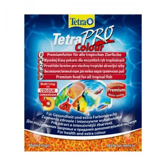 Преміум корм Tetra Pro Colour для всіх видів тропічних риб у компактній упаковці 12 г забезпечує високоякісне та збалансоване харчування. Чіпси підтримують яскраве природне забарвлення, легко засвоюються та мінімально забруднюють воду.