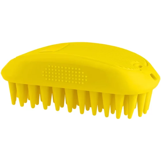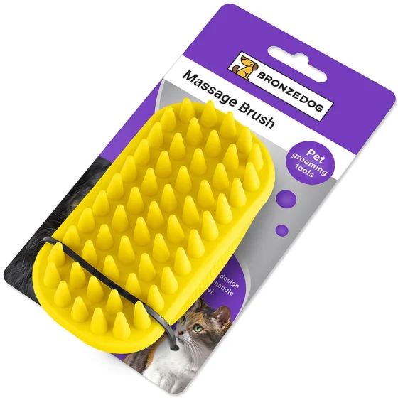 Щітка БронзДог для домашніх тварин, масажна, для миття, жовтий, 12×7 см