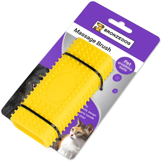 Щітка БронзДог для домашніх тварин, масажна, для миття, жовтий, 12×4 см
