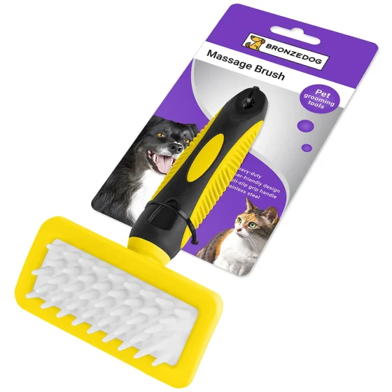 Щітка БронзДог для цуценят та інших домашніх короткошерстих тварин, масажний, жовто-чорний, 16×10 см