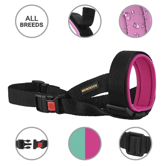 Намордник BronzeDog, для собак, універсальний, неопреновий, рожевий, 28-33 см
