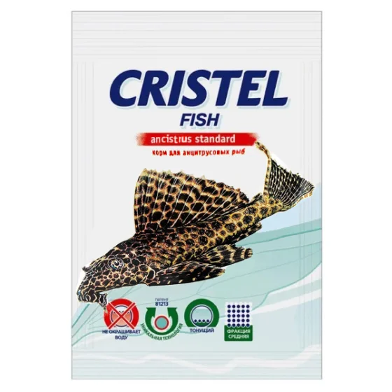 Корм для анцитрусових риб Cristel Ancistrus Standard багатий на протеїни, містить вітаміни та мінеральні речовини, каратиноїди. Така їжа легко засвоюється, але при використанні необхідно дотримуватися зазначеного дозування: не більше 0,1-0,5 г на одне годування риби відповідно до її розмірів, і не частіше ніж 2 рази на день.